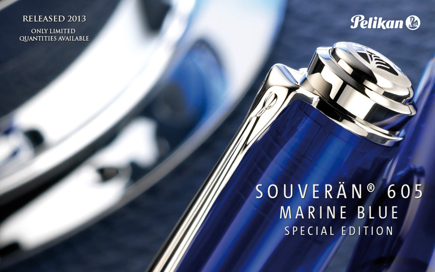 “Gaze at the new Series Souverän M805 Blue Dunes and find yourself fascinated by a world of colors.  Contrasts of shadow and light interplay in hues from brilliant azure to deep, midnight blue.  The composition of flowing silhouettes displays distinct patches of color, yet it also harmoniously unites the varying shades of blue.  Like the color of sand dunes under a midnight moon, the interplay of blues in each M805 Blue Dunes writing instrument is unique.”